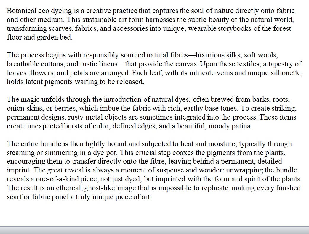 I create stunning art pieces using natural fibres and eco-friendly dyes sourced from the heart of nature. Each piece is a celebration of the organic world!